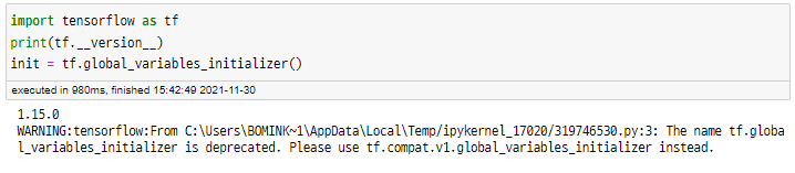 Tensorflow 1.x ๋ฒ์ ์ ์ฌ์ฉ ์ค์์๋ ๋ถ๊ตฌํ๊ณ , Tensorflow 2์์ ์ฌ๋ผ์ง ํจ์๋ค์ ํธ์ถํ ๋ warning ๋ฉ์ธ์ง๊ฐ ๋ด๋ค.