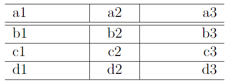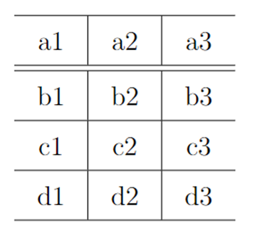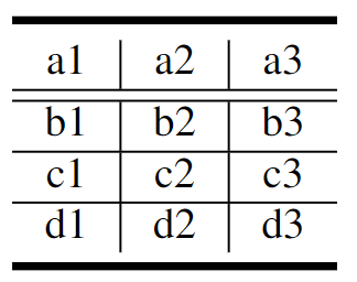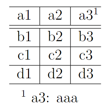 a1 & a2 & a3\tnote{1} \\ \hline\hline