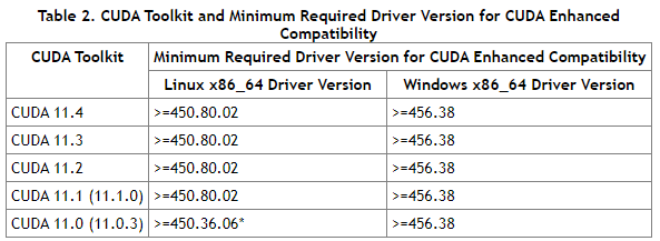 [2] https://docs.nvidia.com/cuda/cuda-toolkit-release-notes/index.html#cuda-major-component-versions__table-cuda-toolkit-driver-versions (11.0~11.4)