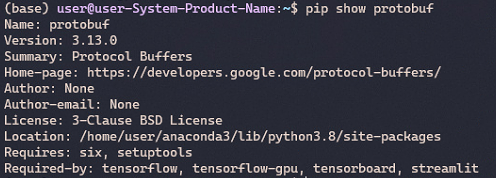 protobuf๋ผ๋ Python package์ ๋ฌธ์ ์ธ๊ฑด๊ฐ ์ถ์ด์ ๋ฒ์ ์ ํ์ธํด ๋ดค์ง๋ง ..